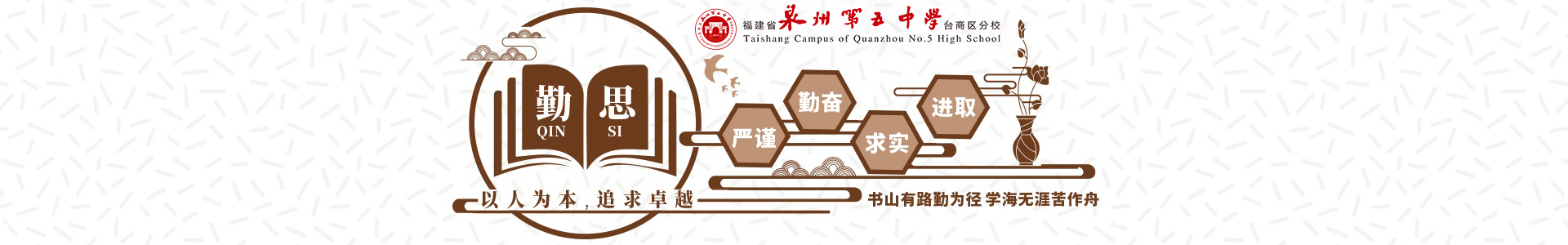 【德育阵地】班级文化展风采,同心筑梦向未来——泉州五中台商区分校开展2025-2026学年班级文化建设评比活动 11-03 【德育阵地】月满中天迎仲秋 旗扬九域贺华诞——泉州五中台商区分校开展“同邀一轮月 共叙家国情”中秋国庆双节系列活动 10-01 【德育阵地】“我和国旗合个影” 定格最美中国红——泉州五中台商区分校“同邀一轮月 共叙爱国情”系列活动 09-28 【五育并举】校本课程焕新彩 双区联动启新程——泉州五中台商区分校召开2025-2026学年校本课程推介会 09-21 【德育课程】金秋九月颂师恩 桃李芬芳映丹心——泉州五中台商区分校开展庆祝第41个教师节系列活动 09-10 【德育阵地】铭记历史 致敬荣光——泉州五中台商区分校开展九三阅兵主题爱国教育系列活动 09-03 【德育阵地】海韵启新航 奋楫续华章——泉州五中台商区分校举行2025-2026学年开学典礼 09-03 【德育课程】初三已来,筑梦同行——泉州五中台商区分校初三迁楼仪式暨家长会圆满举行 08-30